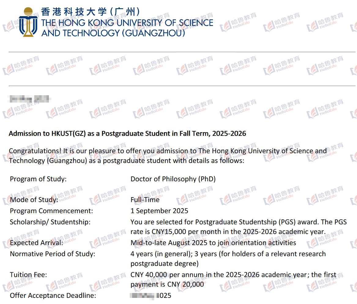 【哈鲁2025录取】炸了!本科直博!香港科技大学(广州)博士全奖录取到!
