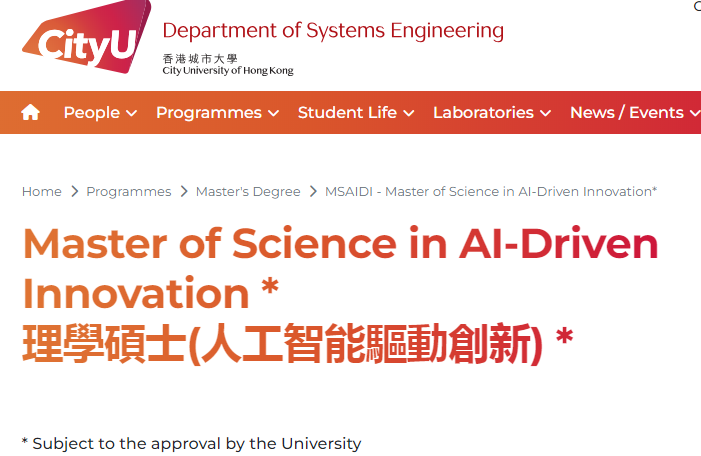在9月中旬,香港城市大学便官宣全面启动26fall硕士项目申请,同时还推出一个超火热的AI类硕士专业——人工智能驱动创新硕士(MSc AI-Driven Innovation)!近日,官网终于更新了有关该专业的课程内容、申请要求、学费、DDL等信息,并开放了该项目26fall的申请通道!下面,我们一起来看看~
