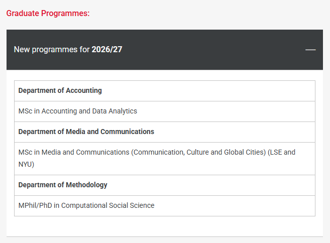 LSE全日制硕士项目已开放26fall申请!新增3个硕士项目!