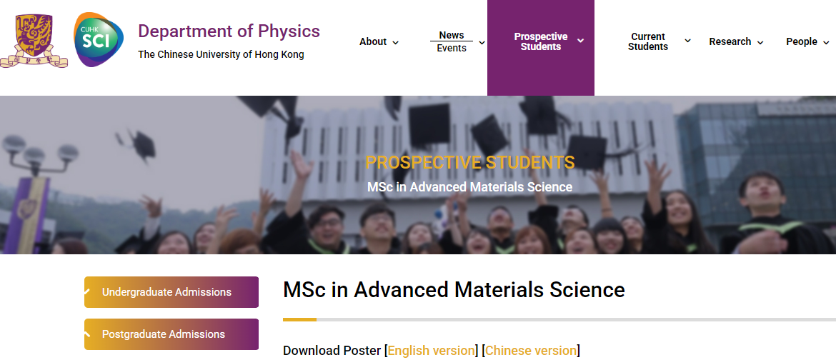 CUHK致力于推进创新和研究,特别是在材料科学领域,紧密结合大学的总体战略目标。作为全球公认的研究密集型机构,CUHK不断促进学术界和产业界的合作,旨在培养能够应对现代社会复杂挑战的具有前瞻性思维的专业人士。化学系研究生部和物理系研究生部合办的先进材料科学理学硕士项目的设立,直接回应了香港、大湾区、中国大陆、亚洲及全球对先进材料开发和应用日益增长的需求。