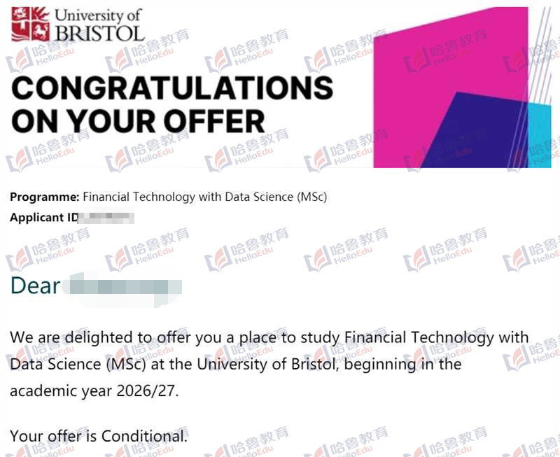 【哈鲁2026录取】布里斯托大学金融技术与数据科学硕士offer到!