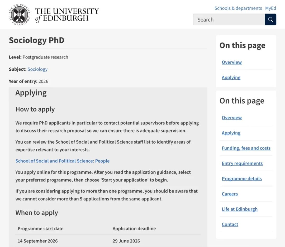 爱丁堡大学2026年9月入学的社会学博士将于2026年6月29日截止申请。