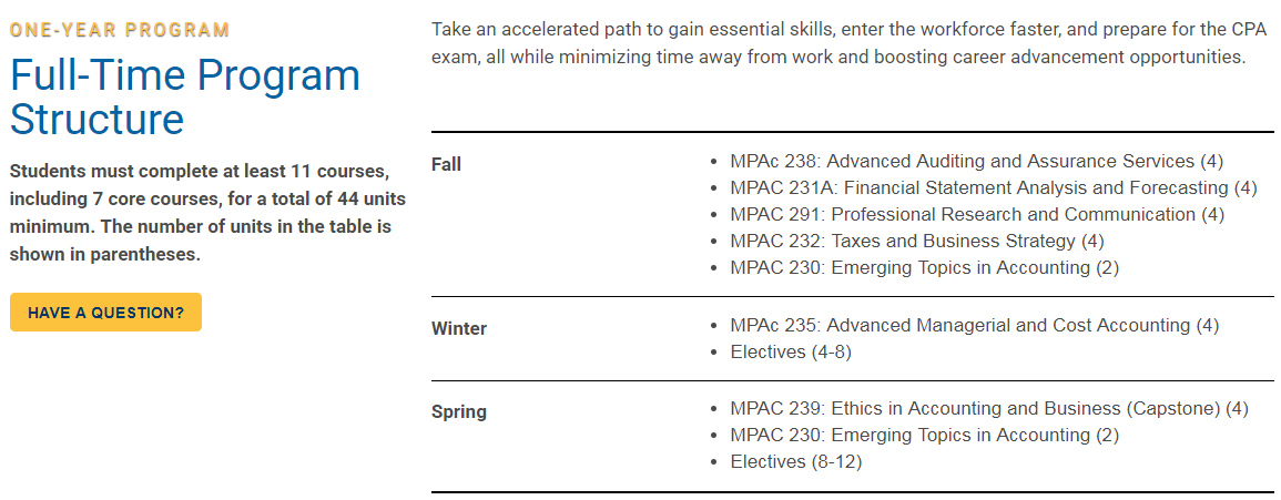 先决条件:财务会计、管理会计、中级会计I、中级会计II、税收、审计