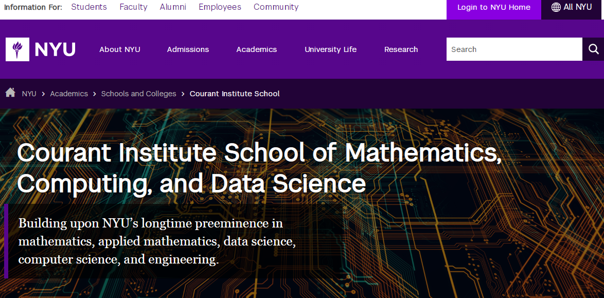 - 计算机科学系:突破性整合文理学院(CAS)和坦顿工程学院(Tandon)、数据科学中心以及纽约大学数学系的部分课程