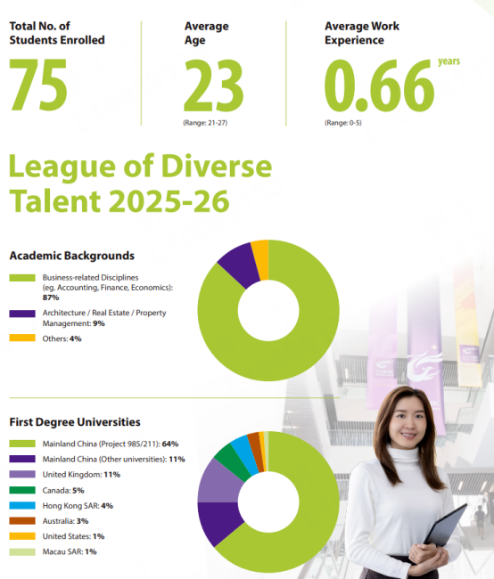 从2025/26学年录取结果来看,70%为商科背景:商业/经济(37.9%)、金融(20.9%)、会计(11.8%)。
