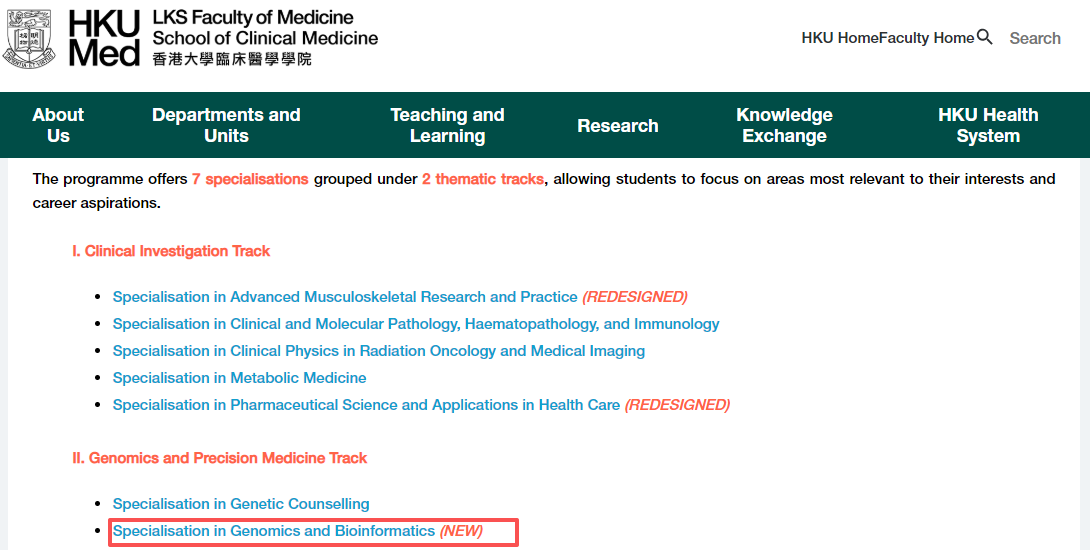 港大医疗科学硕士已开放26fall申请,增设基因组学与生物信息学方向!