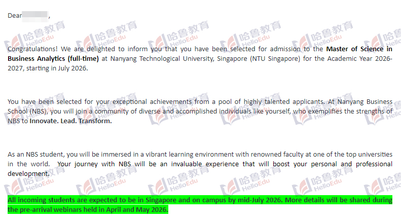 【哈鲁2026录取】GPA85+获南洋理工大学商业分析硕士offer!