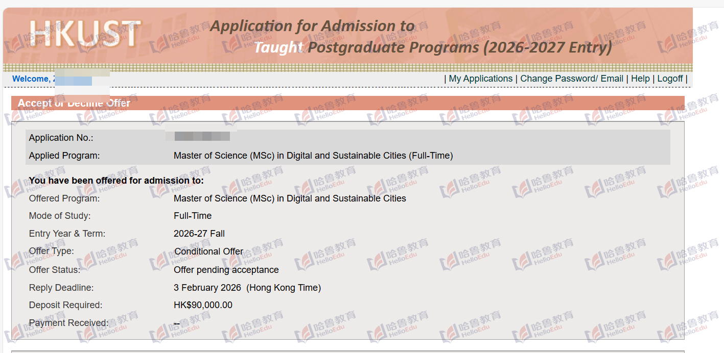 【哈鲁2026录取】GPA2.8+获香港科技大学数字与可持续城市硕士offer!