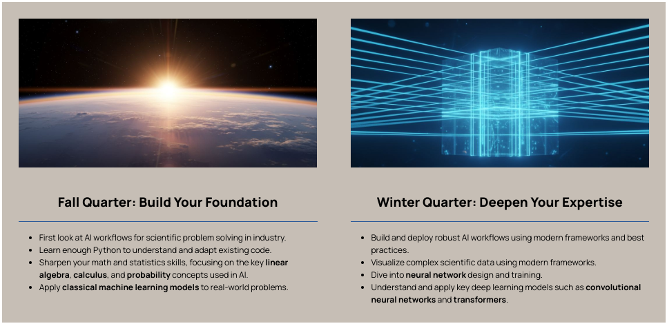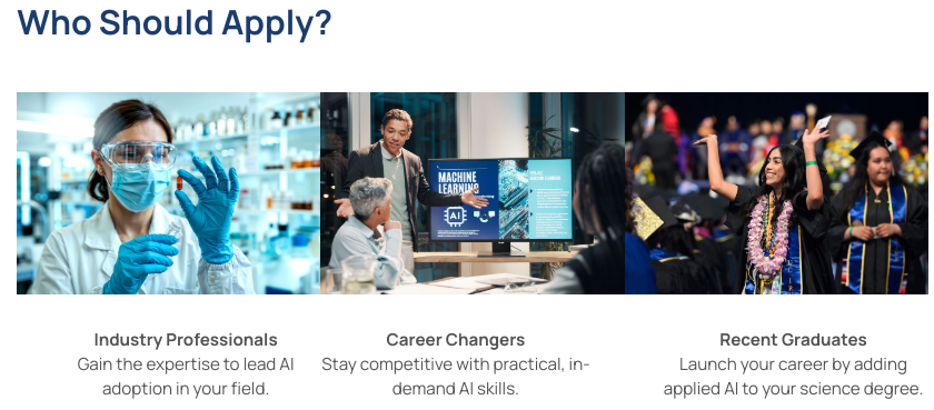 专为具有物理或生物科学背景、希望学习如何利用人工智能工具和技术的个人量身定制(如应届毕业生、转行者,或行业人士)