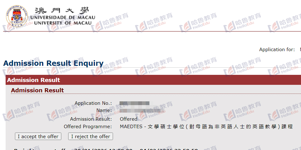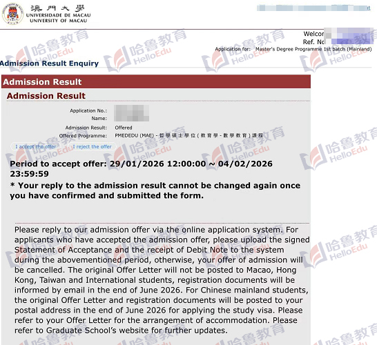 【哈鲁2026录取】澳门大学硕士offer+3,数据科学、教育学& TESOL录取到!