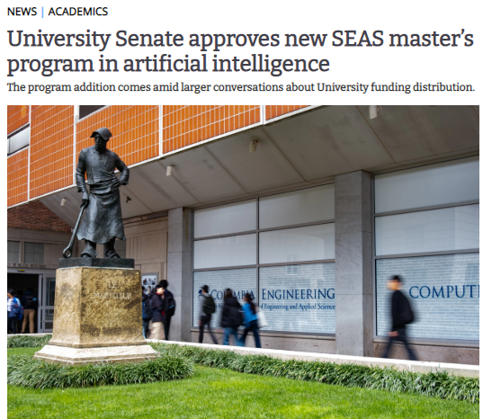 藤校首例!哥大官宣将推出独立AI硕士,26fall首招40-60名学生!