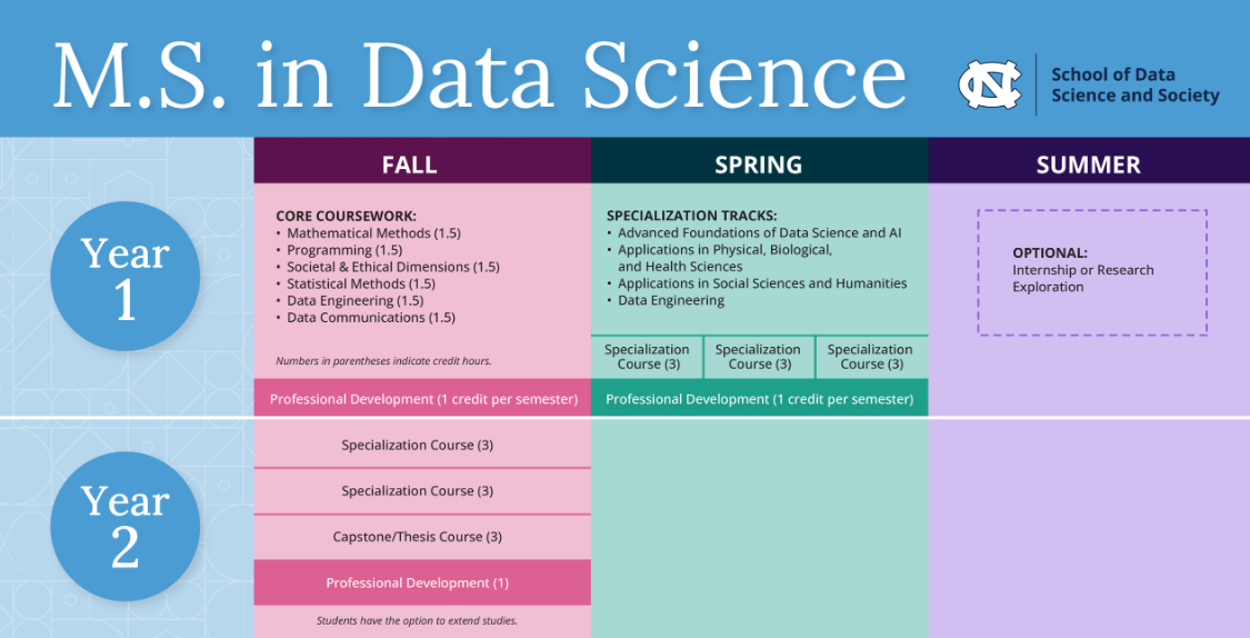 同学们请注意!北卡罗来纳大学教堂山分校(UNC)数据科学与社会学院早在 2026 年初已正式增设了两个顶尖的研究生项目:数据科学硕士 (M.S. in Data Science)和数据科学博士 (Ph.D. in Data Science)!首批全日制学生将于2026年秋季入学,截止日期为2月10日!赶不上26fall的同学,可以考虑下一个申请季哦!下面,我们一起来简单了解这两个课程的一些信息~