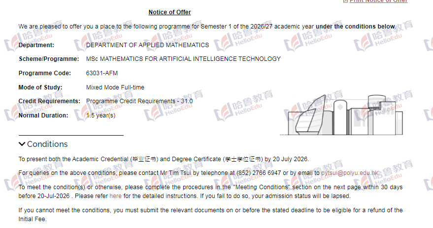 【哈鲁2026录取】GPA80+获香港理工大学人工智能技术数学硕士offer!