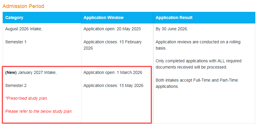 同学们注意啦!新加坡国立大学热门专业金融工程硕士(MSc in Financial Engineering)增设春季课程,并将于3月1日开启27年1月入学申请,且截止日期为5月15日!没赶上26fall的同学,赶紧冲啊~