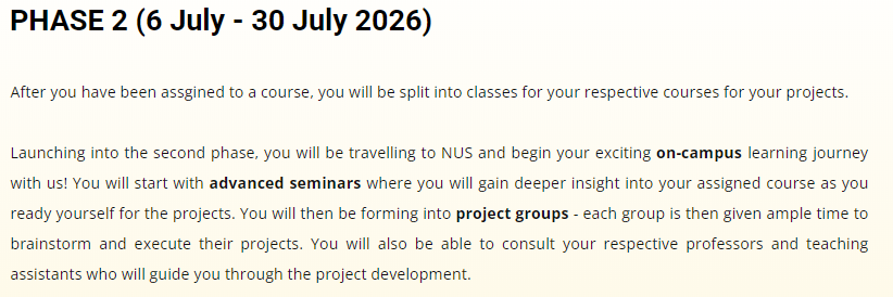 时间:2026年7月6日至7月30日(新国大计算机学院本部研习,共25天)