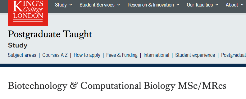 同学们请注意!伦敦国王学院(KCL)在26fall申请季中再次推出全新硕士项目——生物技术与计算生物学硕士(MSc/MRes in Biotechnology & Computational Biology),目前,该项目已开放申请,感兴趣的同学,赶紧冲啊~