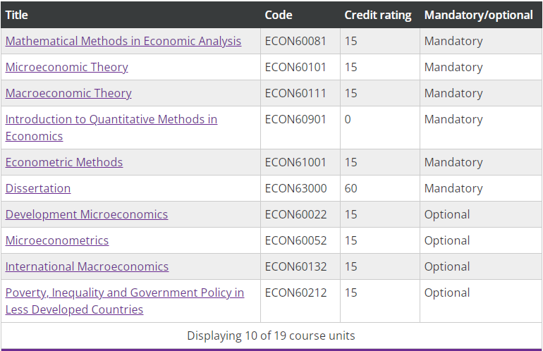 雅思总分不低于7,单项不低于6.5; GPA2:1学位,但是在五个项目里其实在录取上来说要求会更高一点; 不强制要求GMAT或者GRE,倾向于高度量化的学科背景,如mathematics, engineering, economics, finance or science