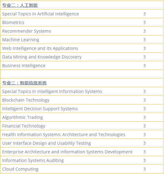 该计划包括7门必修课和1门选修课。提供的课程如下: