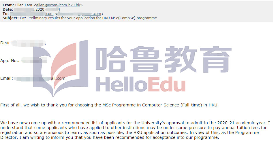 我非常庆幸自己在选择寻找留学中介进行申请的过程中选择了哈鲁,我的辅导老师帮助了我非常多。由于我在申请研究生的时候正在工作,我没有办法一心一意准备申请,而是把大多数时间花在工作上,老师为我量身定做了申请的时间规划和安排,让我可以循序渐进地做准备,并一步一步进行。除此之外,她还帮我准备了非常多我没有时间或者没有能力准备的东西。比如说在个人陈述中,老师在我的学术经历和工作经历中,挖掘到了很多我没有注意到的亮点,并且用非常别具一格的语言将它们表现出来。除此之外,在面试的过程中,老师也在帮我准备面试,而且提出了很多在面试中可能会提到的问题。我申请了香港、英国、加拿大三个地区的学校,老师在详细询问过我的想法之后,结合我之后的学习工作规划和我的兴趣爱好为我进行选校。最后在我拿到的几个offer中纠结时,老师结合我个人经历,在几个offer中对比了他们各自的优势和劣势。几个不一样的program都有不同的优势,教学的侧重点也有所不同。最后我在老师的帮助下选择了港大,由于我本科进行的研究和后殖民主义相关,最终我选择了香港大学有相关课程的项目。