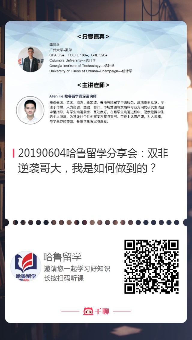好了,今天的分享就到此~同学们如需要更深层次的了解,或想了解更多留学资讯以及想知道自己的条件能申请到哪些海外院校,可微信关注“哈鲁留学”点击“原文阅读”,我们将为您做免费的留学评估,免费进行学校定位、专业定位等!