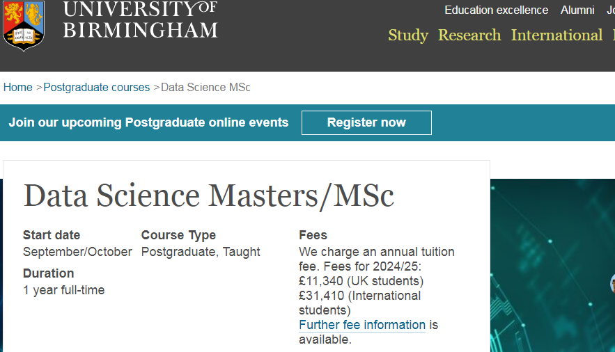 同学们注意啦!诺丁汉大学2025年秋季研究生入学申请已开放!目前,诺丁汉大学官网已经可以递交2025年入学的申请,涵盖 2025年8月1日至2026年7月31日的所有直入课程。2025入学的课程费用和信息正在陆续更新至官网!