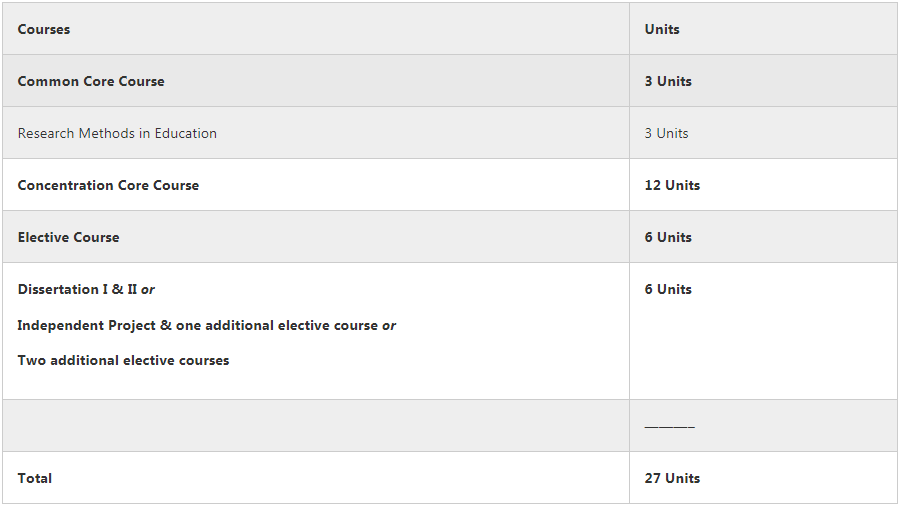 该课程由必修科目和专题论文/两门授课科目两部分组成。课程的总学分为29学分,其中必修科目23学分,专题论文/两门授课科目6学分,另设限定选修科目,以供有需要学生修读。