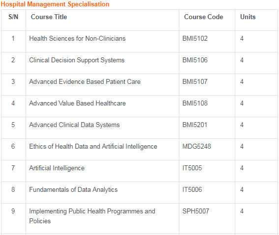 该项目的所有学生要求修读三门核心课程和五门选修课以及一个基于行业的项目。全日制学生的最低和最高候选资格分别为一年和两年。对于非全日制学生,最短和最长候选资格分别为2年和4年。