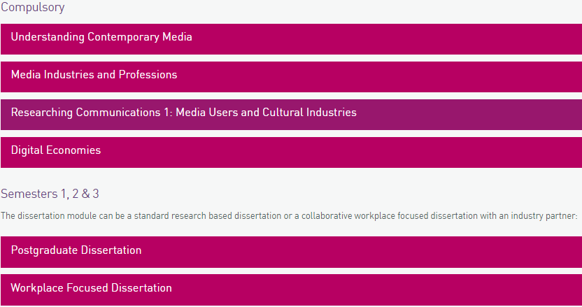 二、课程内容: 普通法学硕士方向的学生学习一门必修模块,即法律研究概论( Introduction to Legal Research),并从所有法学硕士途径的可用模块中选择五个模块,例如: Assessment and Financing of Energy Projects Banking Law Commercial Conflict of Laws Company Law Criminal Law Reform Now Elements of Cyberlaw Environmental Energy Law European Human Rights Law Financing of International Trade Issues in International Criminal Law and Justice Global Crime Problems Human Rights and Criminal Justice Human Rights and Health Care Law Intellectual Property Law International and European Legal Responses to Terrorism International Corporate Governance International Criminal Law and Justice International Human Rights International Trade Law Law and Language Law of International Organisations Law, Society and Governance Public International Law Renewable Energy and Climate Change Law Socio-Legal Theory Transnational Criminal Law