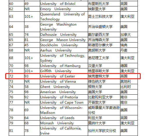 2019年世界大学法学专业排名中埃克塞特大学的法学专业排在第72位。