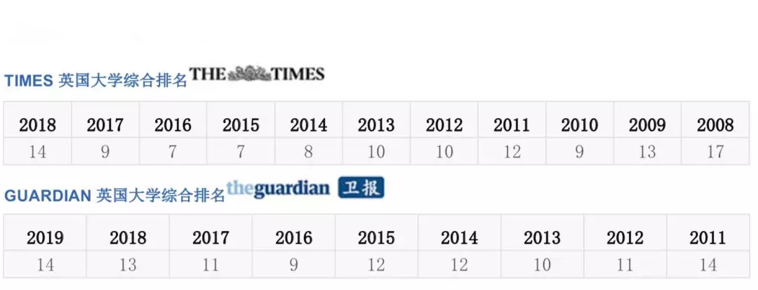 2018《泰晤士报和星期日泰晤士报优秀大学指南中》排名英国第14