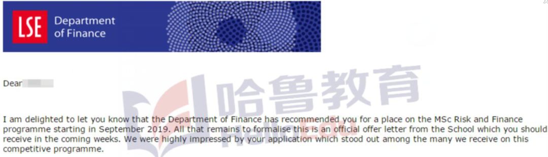 【哈鲁2019录取】伦敦政经学院LSE风险金融硕士录取捷报!