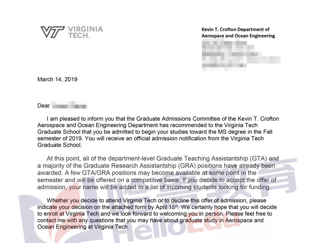 弗吉尼亚理工大学的海洋工程和航空航天设在同一院系下,整个学院偏向于航空航天,海洋工程集中在湍流研究方便,并且只提供Master of Science 学位。VT申请需要寄送两份成绩单,一份到研究生院,一份到系上。