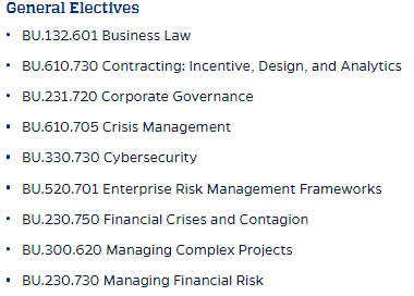 商业分析和风险管理项目共36个学分,包括: