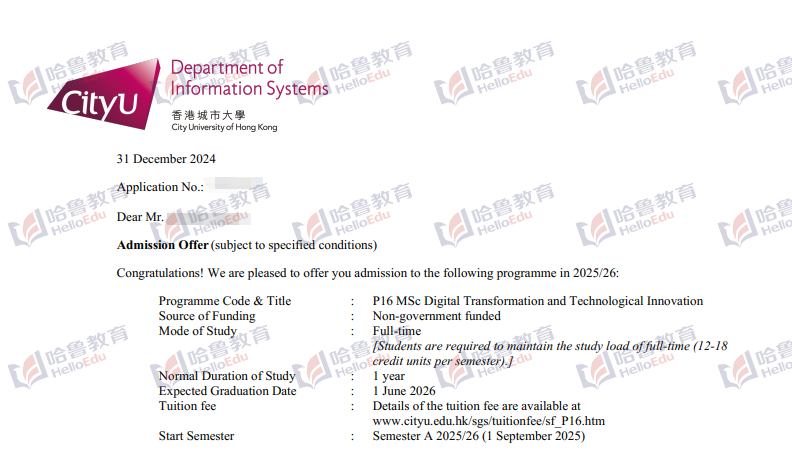 【哈鲁2025录取】香港城市大学数字转型与技术创新硕士offer到!