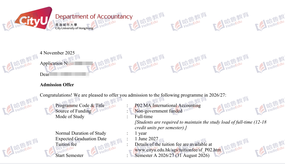 【哈鲁2026录取】港城大热门商科录取!双非背景拿下国际会计硕士offer!