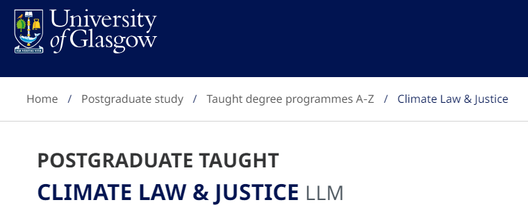 格拉斯哥大学26fall推出全新气候法与司法硕士,已开放申请!