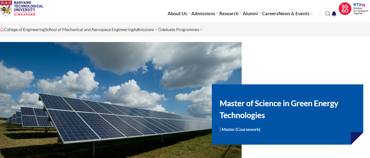 南洋理工大学又增新专业—绿色能源技术硕士,已开放26fall申请!