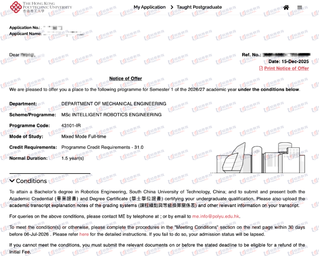 【哈鲁2026录取】GPA2.9+获香港理工大学智能机器人工程硕士offer!