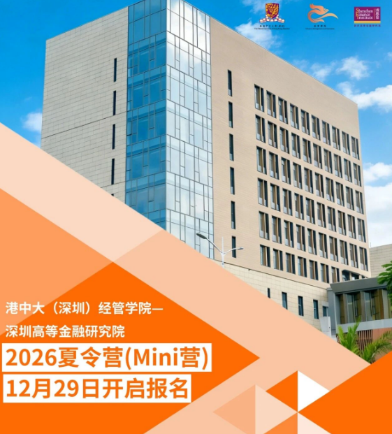 同学们请注意!香港中文大学(深圳)经管学院—深圳高等金融研究院2026夏令营(Mini营)已于12月29日开启报名!这个时间比上一年度提前了将近一个月,因为2025年的Mini营是在1月23日开放报名的。