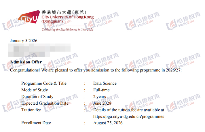 【哈鲁2026录取】GPA2.9+获港城(莞)计算机科学硕士&数据科学硕士offer!