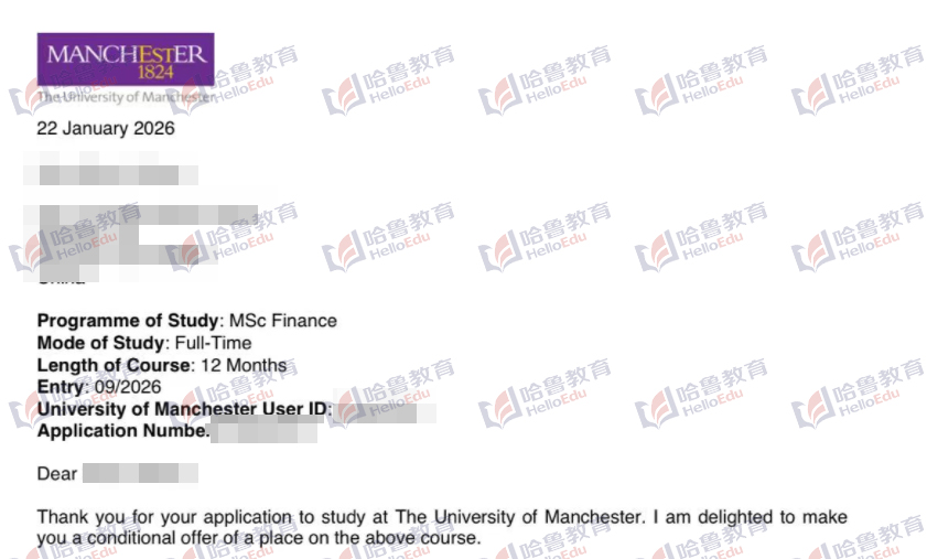 【哈鲁2026录取】曼彻斯特大学金融学硕士offer到!