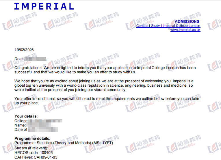 【哈鲁2026录取】重磅!帝国理工学院统计学硕士offer到!