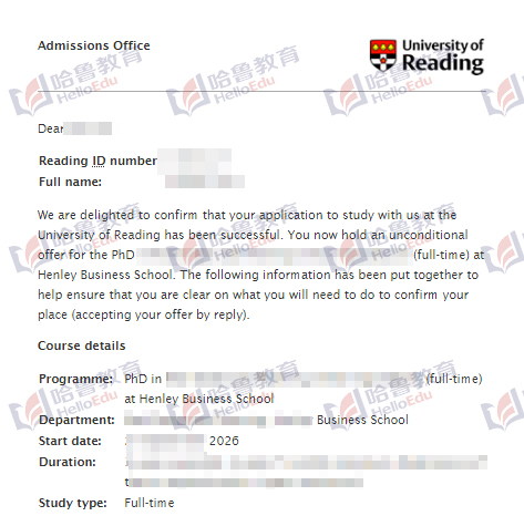 【哈鲁2026录取】来了来了!雷丁大学博士offer到!