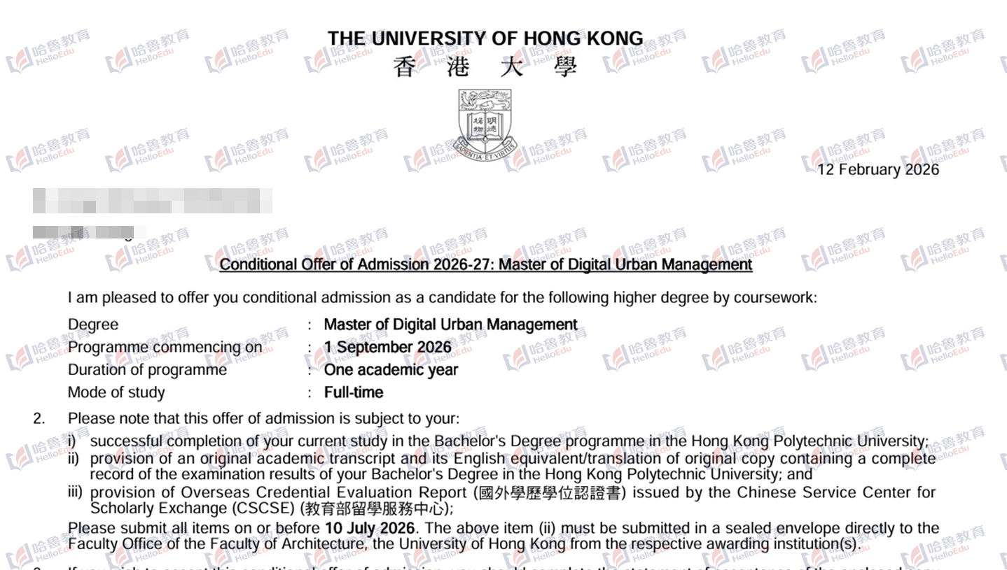 【哈鲁2026录取】厉害了!GPA2.8+斩获两枚香港大学硕士offer!