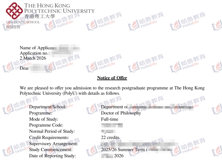 【哈鲁2026录取】重磅!香港理工大学博士录取到!