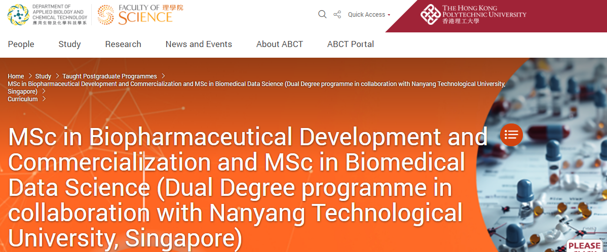 香港理工大学:生物医药研发及产业化理学硕士 (MSc in Biopharmaceutical Development and Commercialization)
