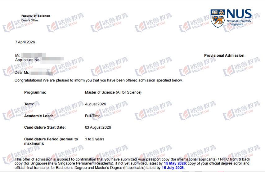 【哈鲁2026录取】新加坡国立大学科学人工智能硕士offer到!